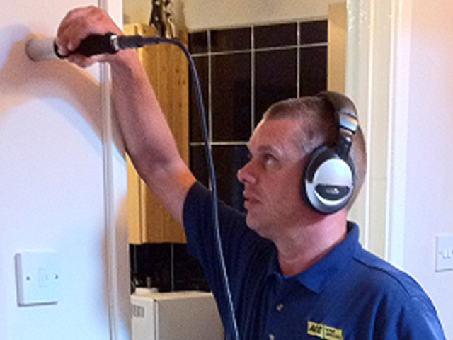 Moisture metres check the levels of moisture on surfaces. Our engineer will take several readings around your home where central heating pipes run around your property and around the boiler itself to check for areas with higher levels of moisture to pinpoint the source of the water leak. Higher levels of moisture present indicate there may be a central heating leak nearby. Sometimes as some materials are harder to test then others we may need to drill a small hole to take more accurate readings inside the surface. Although this approach isn't completely non-invasive, the damage caused is very minimal with this method.